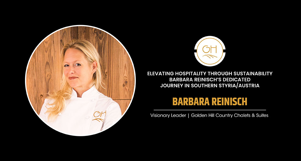 Barbara places extreme importance on sustainability. Andreas, her husband, founded one of the largest sustainability awards in Austria, the “TRIGOS.” Golden Hill produces over 50% of its energy by using photovoltaic hot water through solar energy, earth- and air-heating systems, recycled rainwater, outdoor-saunas, and the f itness-cube are upcycled container and very importantly, the chalets are built from solid wood. Concerning menu decisions, the company gets most of the ingredients from the farmers close by, offering “regional culinary delights with an international touch.” They use fish from local waters, deer from a nearby private property, and beef from a local farmer. Imported products are generally used when needed due to seasonal limitations.
